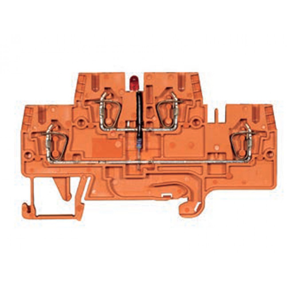 Этажная функциональная клемма, 2 этажа, тип фиксации провода: пружинный, номинальное сечение: 2,5 мм кв., 24A, ширина: 5 мм, цвет: оранжевый, тип монтажа: DIN35