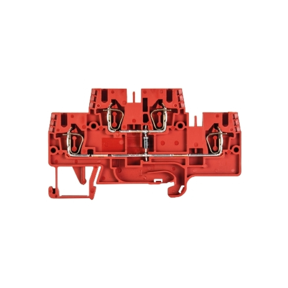 Этажная функциональная клемма, 2 этажа, тип фиксации провода: пружинный, номинальное сечение: 2,5 мм кв., 24A, ширина: 5 мм, цвет: красный, тип монтажа: DIN35
