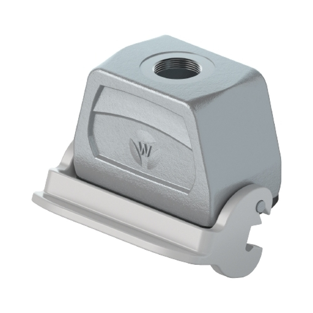 Крышка разъема на кабель, типоразмер 10B, с уплотнителем, 1 отверстие с резьбой для кабельных вводов M20x1,5, с верхним расположением, с одной металлической защелкой, материал корпуса: алюминиевый сплав