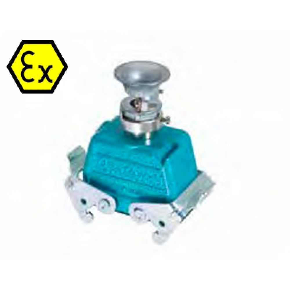 Крышка разъема Ex 99.743.3329.7, Крышка разъема на кабель, типоразмер 10B, взрывозащищита, с уплотнителем, 1 кабельный ввод M20x1,5, с разгрузкой на изгиб, IP54, с верхним расположением, с двумя защелками, материал корпуса: цинковый сплав
