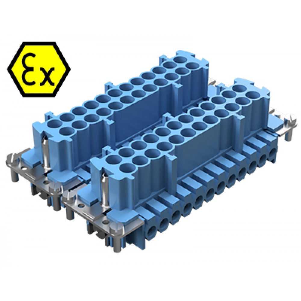 Вилочная контактная вставка взрывозащищенного разъема REVOS Ex, Size 48, винтовая фиксация, с защитой провода, 48 полюсов + РЕ, 90 V, до 16 A, материал контактов: медный сплав, тип покрытия контактов: олово