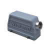Крышка разъема на кабель, типоразмер 24B, без уплотнителя, 1 отверстие с резьбой для кабельных вводов M25x1,5, с резьбовым удлинителем, с боковым расположением, без защелок (упоры для двух защелок), материал корпуса: алюминиевый сплав