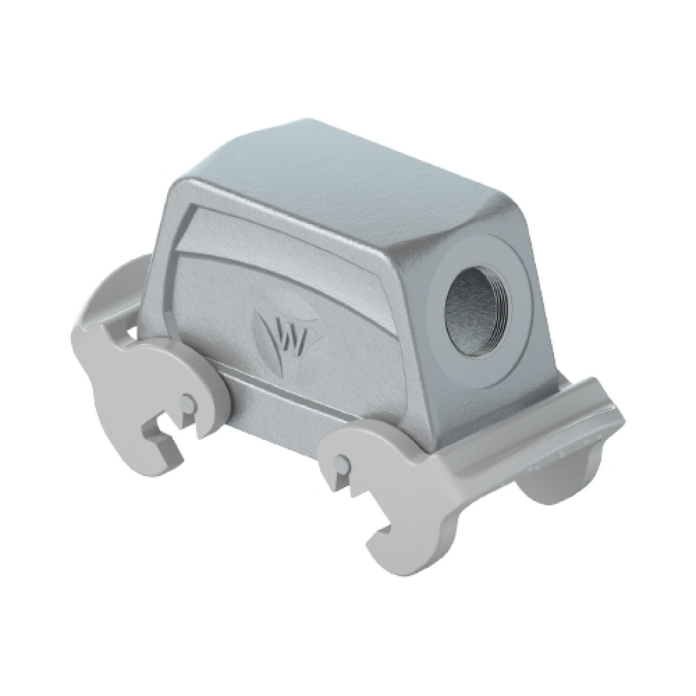 Крышка разъема на кабель, типоразмер 24B, без уплотнителя, 1 отверстие с резьбой для кабельных вводов M25x1,5, с боковым расположением, с двумя защелками, материал корпуса: алюминиевый сплав