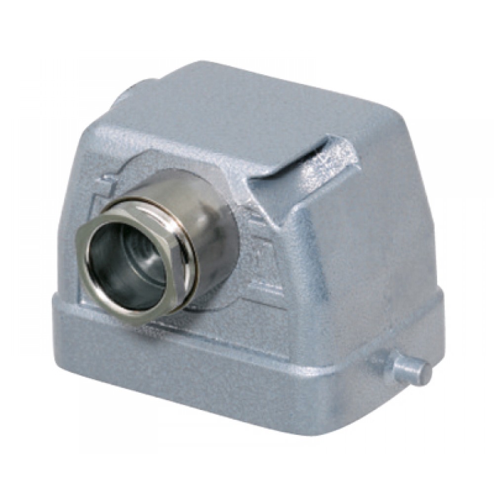 Крышка разъема на кабель, типоразмер 6B, без уплотнителя, 1 отверстие с резьбой для кабельных вводов M20x1,5, расположен по длинной стороне корпуса, без защелки (упоры под одну защелку), материал корпуса: алюминиевый сплав