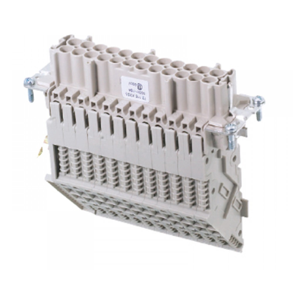 Розеточная контактная вставка, винтовая фиксация, 24 полюса + PE, типоразмер 24B, 500V, 16A, сечение обслуживаемых проводников 0,5-4 мм кв., тип покрытия контактов: олово, заземление справа, длинное исполенение, (6 полей для маркировки)
