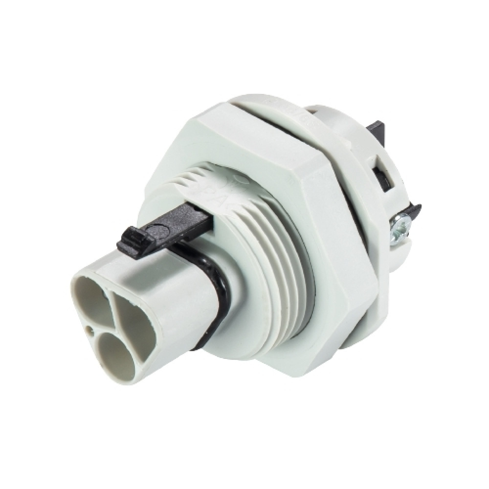 Вилочный разъем в панель, М25, 3 полюса, тип фиксации провода: винтовой, номинальные характеристики: 250/400V, 20A,цвет корпуса:белый,цвет контактной вставки: белый, серия RST Classic
