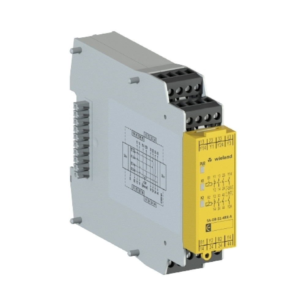 Выходной модуль SA-OR-S1-4RK-A, Модуль вывода системы samos, номинальное напряжение: 24 V DC, 2 x 2 реле до 230 V AC / 6 A, 2 сигнальных выхода 24 V DC / 50 mA, 2 цепи обратной связи (NC контакт), винтовая фиксация провода, серия SAFETY