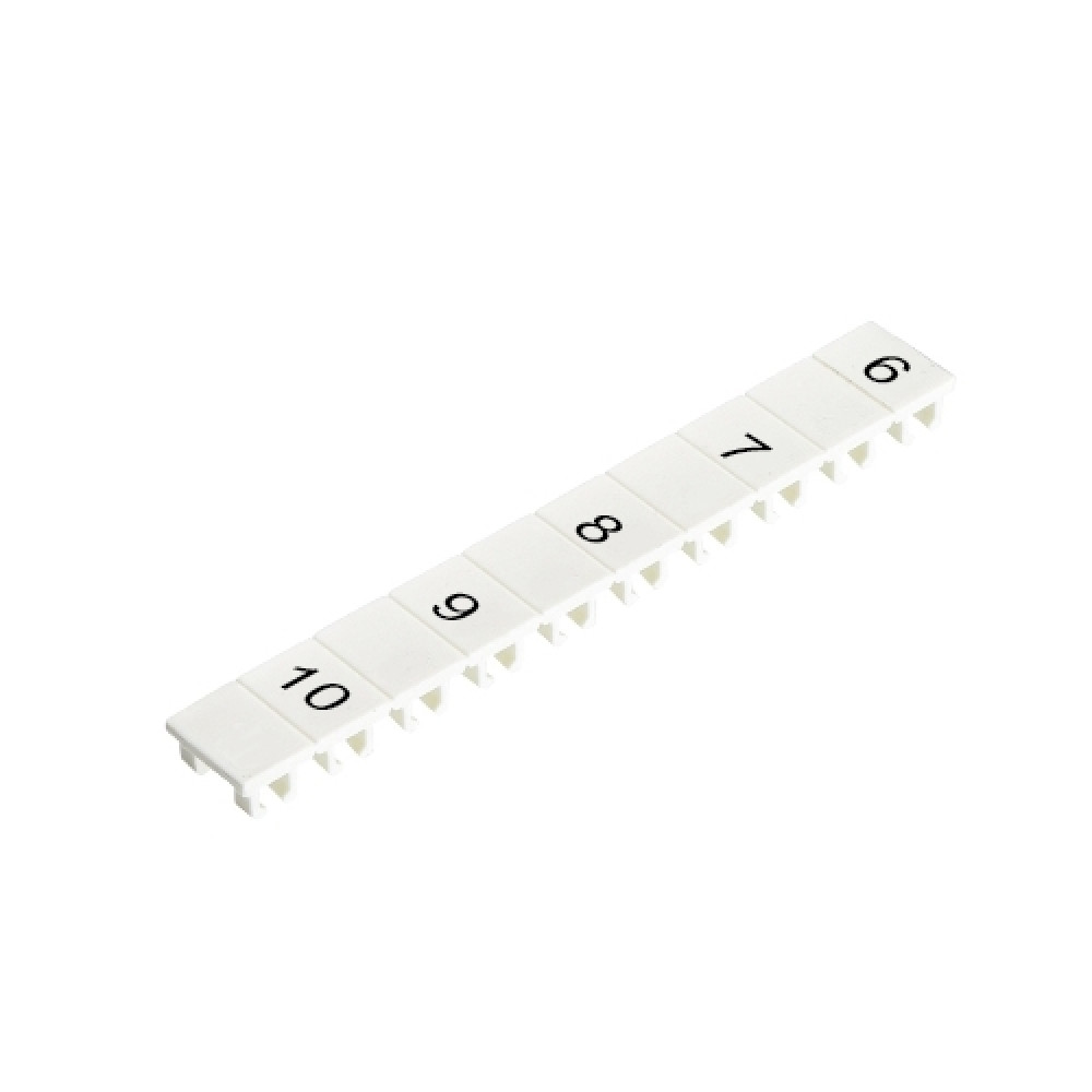 Маркировочные шильдики, для клемм сечением 6 мм.кв., боковая / верхняя, 10 шильдиков, нанесенные символы: 6, пробел,7, ,8, ,9, ,10, с горизонтальным расположением, размер шильдика: 5,75 x 8,3 мм, цвет: белый