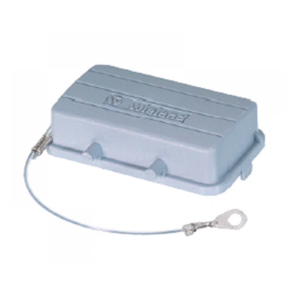 Защитная крышка, типоразмер 16B, без уплотнителя, без защелок (упоры для двух защелок), с удерживающей стропой от утери с кольцевым наконечником, материал корпуса: пластик