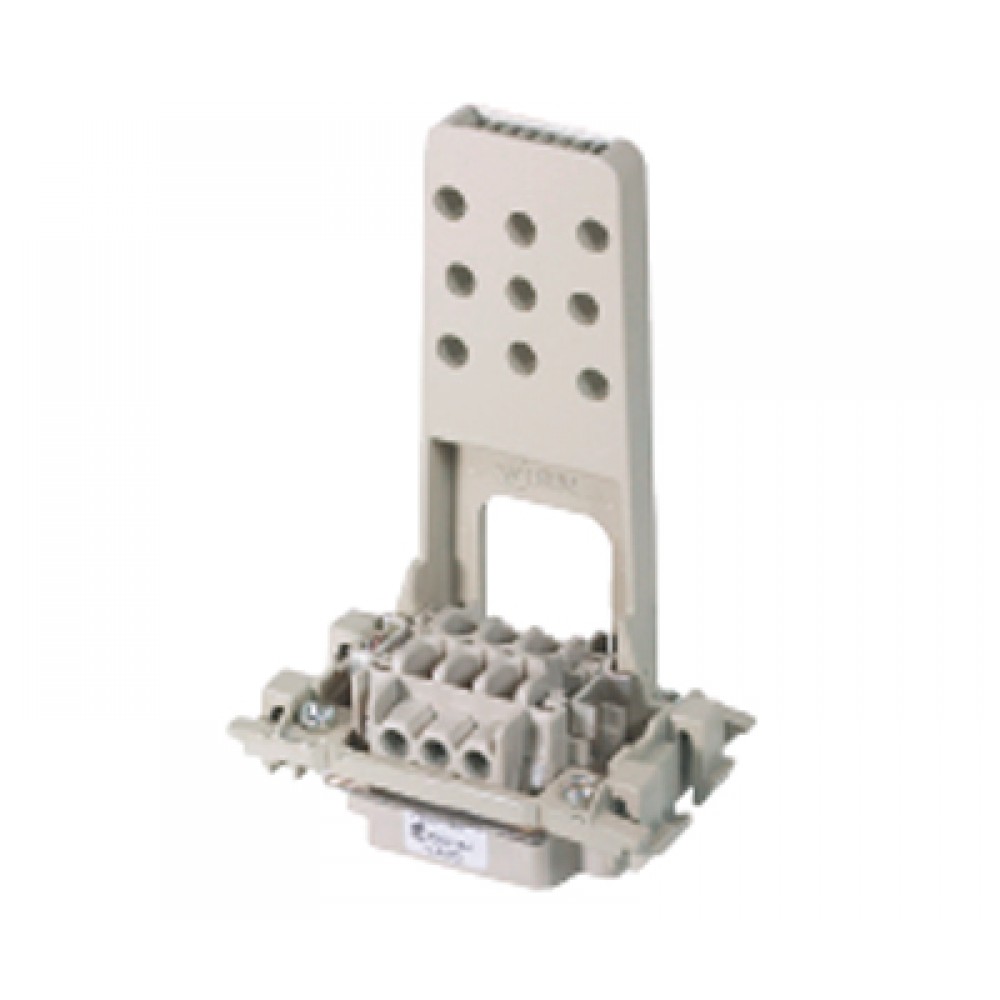 Розеточная контактная вставка, винтовая фиксация, 24 полюса + PE, типоразмер 24B, 690V, 16A, сечение обслуживаемых проводников 0,5-2,5 мм кв, тип покрытия контактов: олово, с упорами для защелок, с разгрузкой от натяжения, с монтажной рамкой