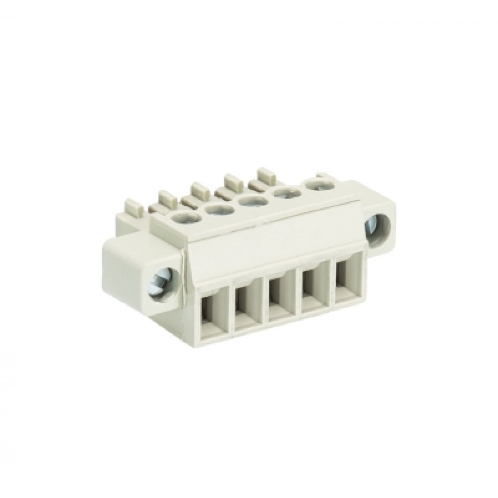 Розетка Wiecon 8513 B / 5 F OB, Розеточный разъем, угловой, на кабель, шаг: 3.5 мм, 5 полюсов, фиксация провода винтовая, исполнение: без маркировки, с монтажными фланцами, 250V, 8А, цвет: серый