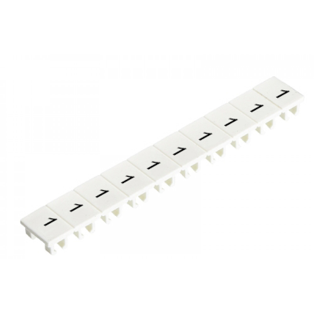 Маркировка для клемм (полоска) M1.136.7000.1, Маркировочные шильдики, для клемм сечением 4 мм.кв., боковая / верхняя, 10 шильдиков, нанесенные символы: 1, с горизонтальным расположением, размер шильдика: 5,75 x 8,3 мм, цвет: белый