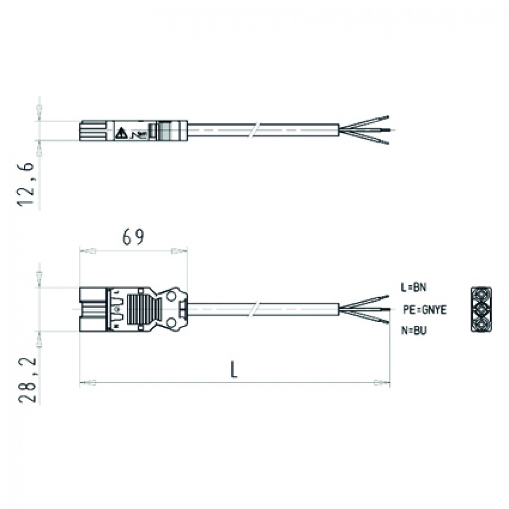 Кабельная сборка, оконеченная вилочным разъемом GST18i3, и свободным концом, 3 полюса, длина кабеля: 0,3 метра, сечение жил кабеля: 3х1,5 мм.кв., номинальное напряжение: 250V, номинальный ток: 16А, цвет разъема: красный, цвет кабеля: черный