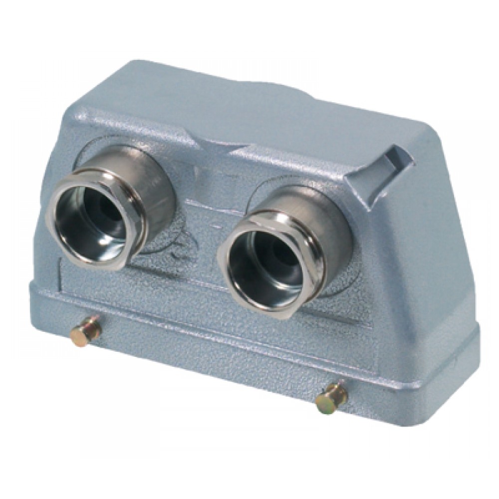 Крышка разъема на кабель, типоразмер 24B, без уплотнителя, 2 отверстия с резьбой для кабельных вводов M25x1,5, IP54, расположен по длинной стороне корпуса, без защелок (упоры для двух защелок), материал корпуса: алюминиевый сплав