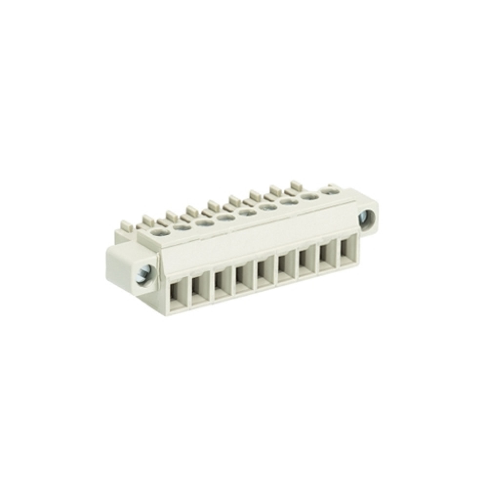 Розеточный разъем на кабель 8513 B/9 F OB, Розеточный разъем, угловой, на кабель, шаг: 3.5 мм, 9 полюсов, фиксация провода винтовая, исполнение: без маркировки, с монтажными фланцами, 250V, 8А, цвет: серый