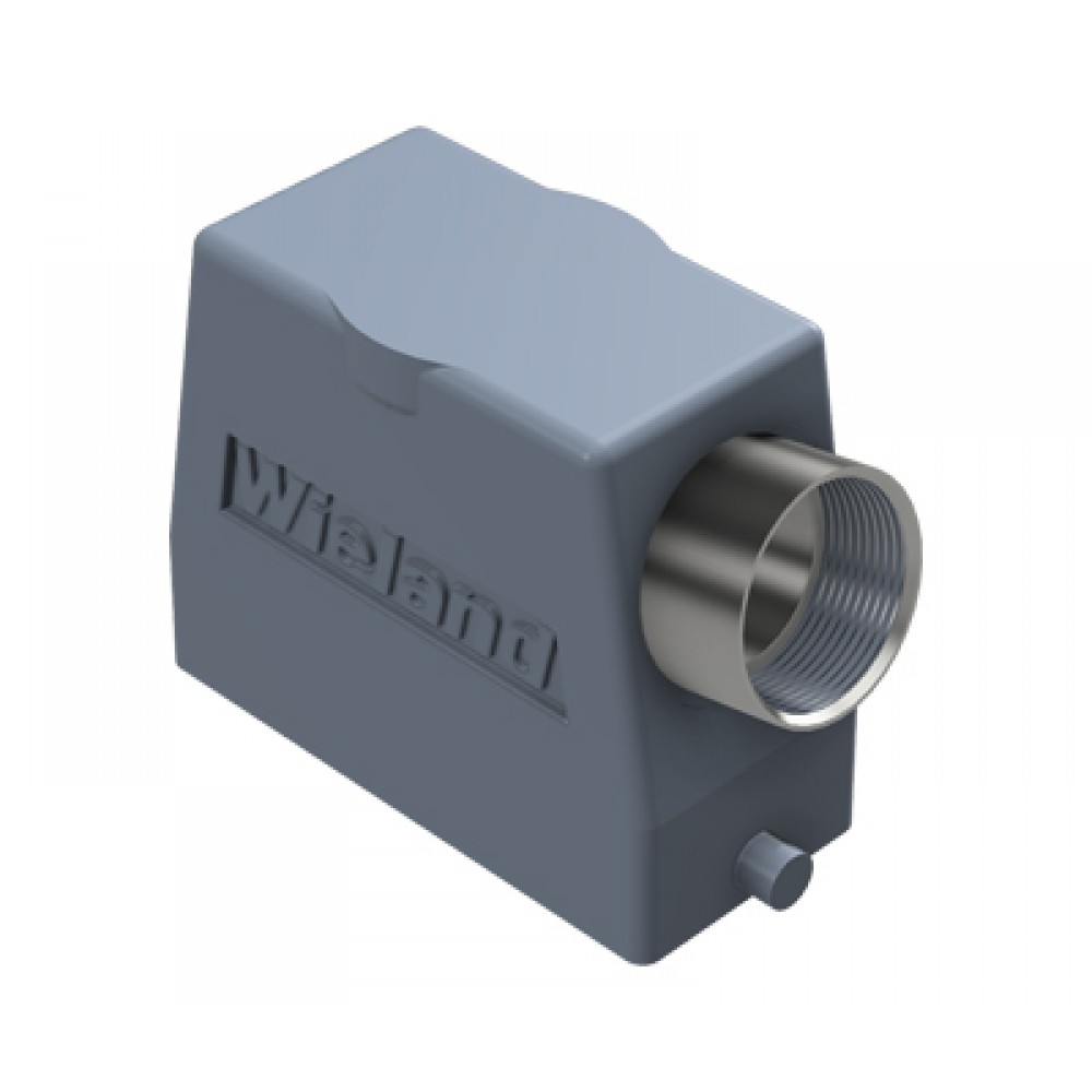Крышка разъема на кабель, типоразмер 16B, высокое исполнение, без уплотнителя, 1 отверстие с резьбой для кабельных вводов M32x1,5, с боковым расположением, без защелки (упоры под одну защелку), материал корпуса: алюминиевый сплав