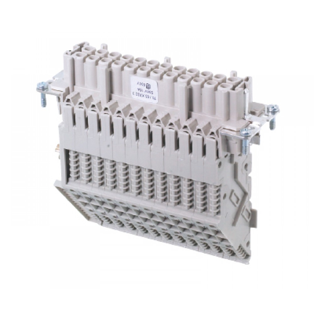 Розеточная контактная вставка, пружинная фиксация, 24 полюса + PE, типоразмер 24B, 500V, 16A, сечение обслуживаемых проводников 0,5-2,5 мм кв, тип покрытия контактов: серебро, заземление слева, длинное исполенение, (6 полей для маркировки)