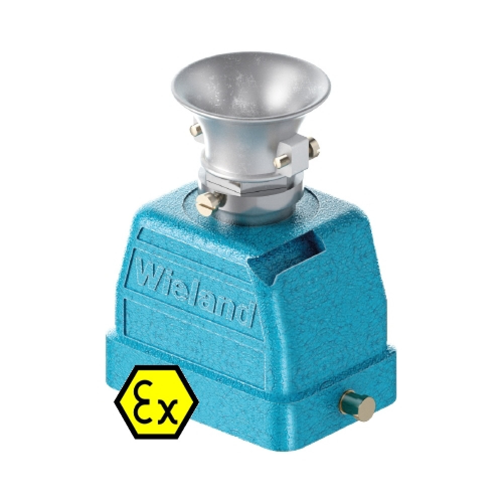 Крышка разъема Ex EX GOT GI 6 M20 09IA Z3, Крышка разъема на кабель, типоразмер 6B, взрывозащита, без уплотнителя, 1 кабельный ввод M20x1,5, с разгрузкой на изгиб, IP54, с верхним расположением, без защелки (упоры под одну защелку), материал корпуса: цинковый сплав