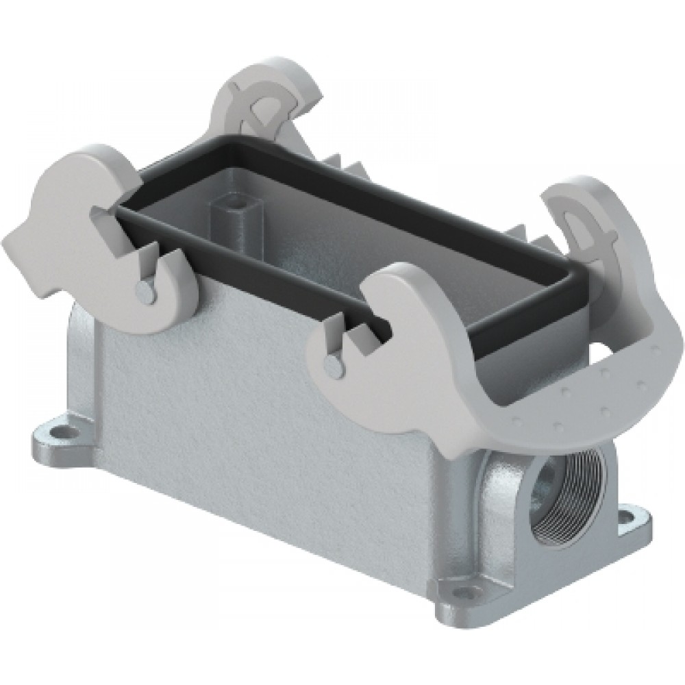 Основание разъема на панель, закрытое, типоразмер 24B, с уплотнителем, 2 отверстия с резьбой для кабельных вводов M25x1,5, с двумя защелками, без защитной крышки, материал корпуса: алюминиевый сплав