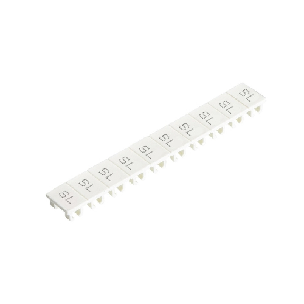 Маркировка для клемм (полоска) 9705A/6/10B SL, Маркировочные шильдики, для клемм сечением 4 мм.кв., боковая / верхняя, 10 шильдиков, нанесенные символы: SL, с горизонтальным расположением, размер шильдика: 5,75 x 8,3 мм, цвет: белый