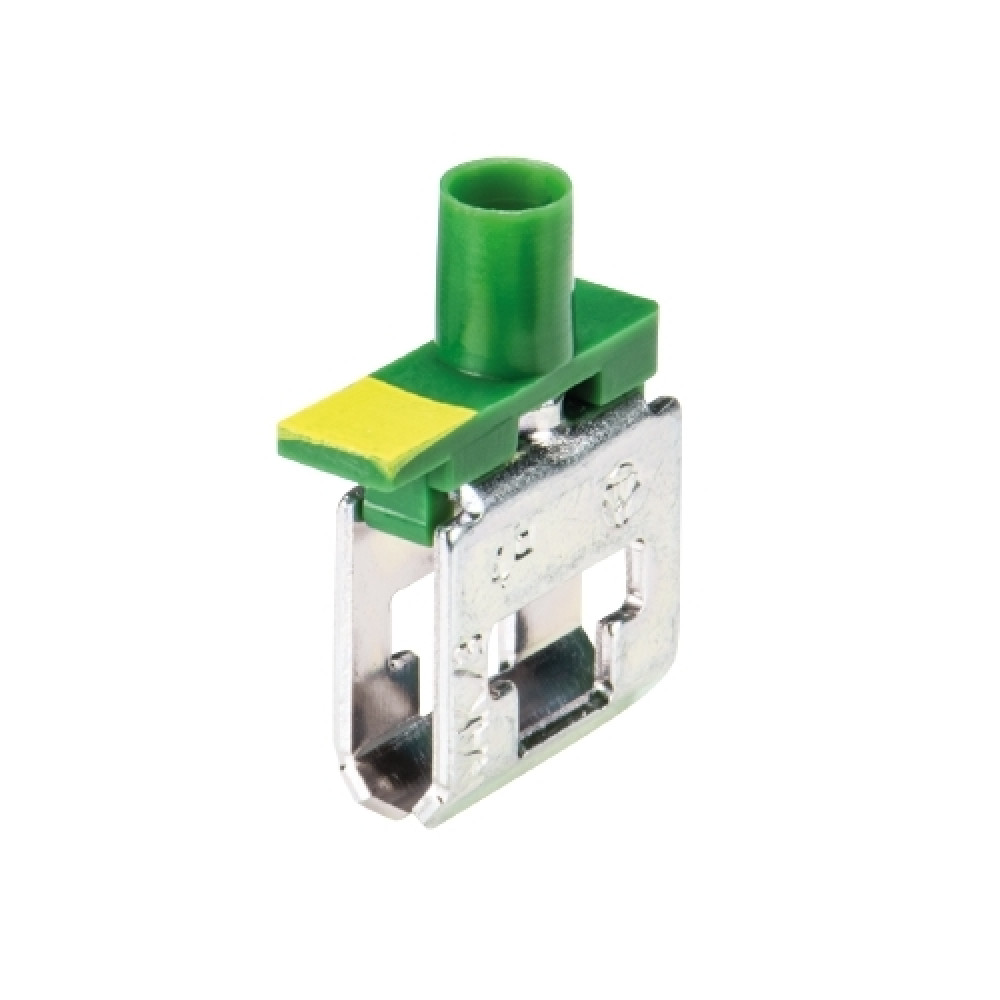 Клемма для подключения к токовой шине, тип фиксации провода: винтовой, номинальное сечение: 4 мм кв., цвет: зеленый, тип монтажа: шина 6х6