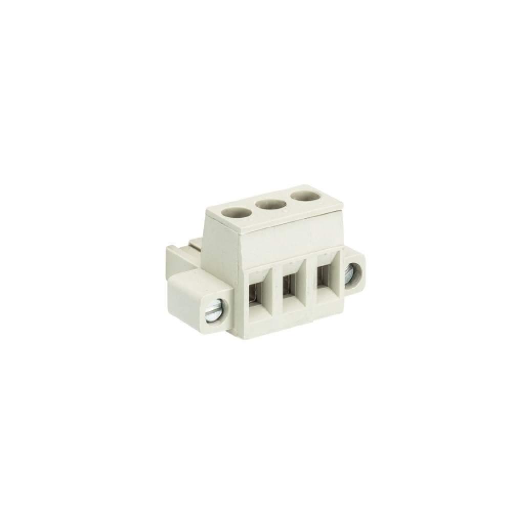 Розеточный разъем, угловой, на кабель, шаг: 5.08 мм, 3 полюса, фиксация провода винтовая, исполнение: с монтажными фланцами, без маркировки, 400V, 12А, цвет: серый