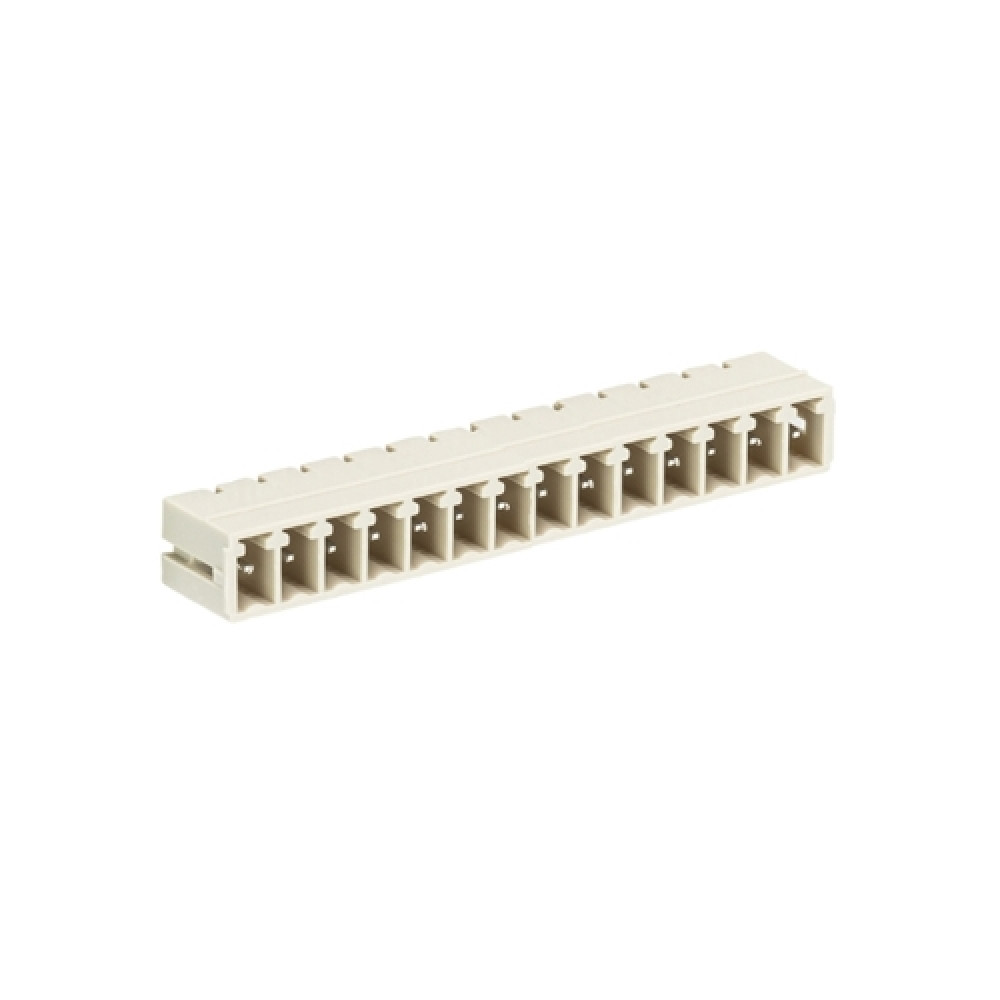 Вилочный разъем на плату 8813 S/14 WF, Вилочный разъем, горизонтальный, на плату, шаг: 3.81 мм, 14 фиксация на плате пайкой, исполнение: без маркировки, с монтажными фланцами, 250V, 8А, цвет: серый