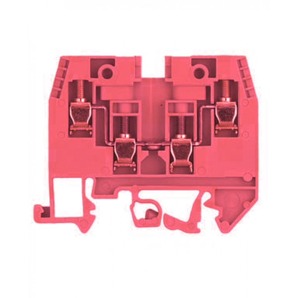 Проходная клемма, 4 точки подключения, тип фиксации провода: винтовой, номинальное сечение: 4 мм кв., 32A, 500V, ширина: 6 мм, цвет: красный, тип монтажа: DIN35