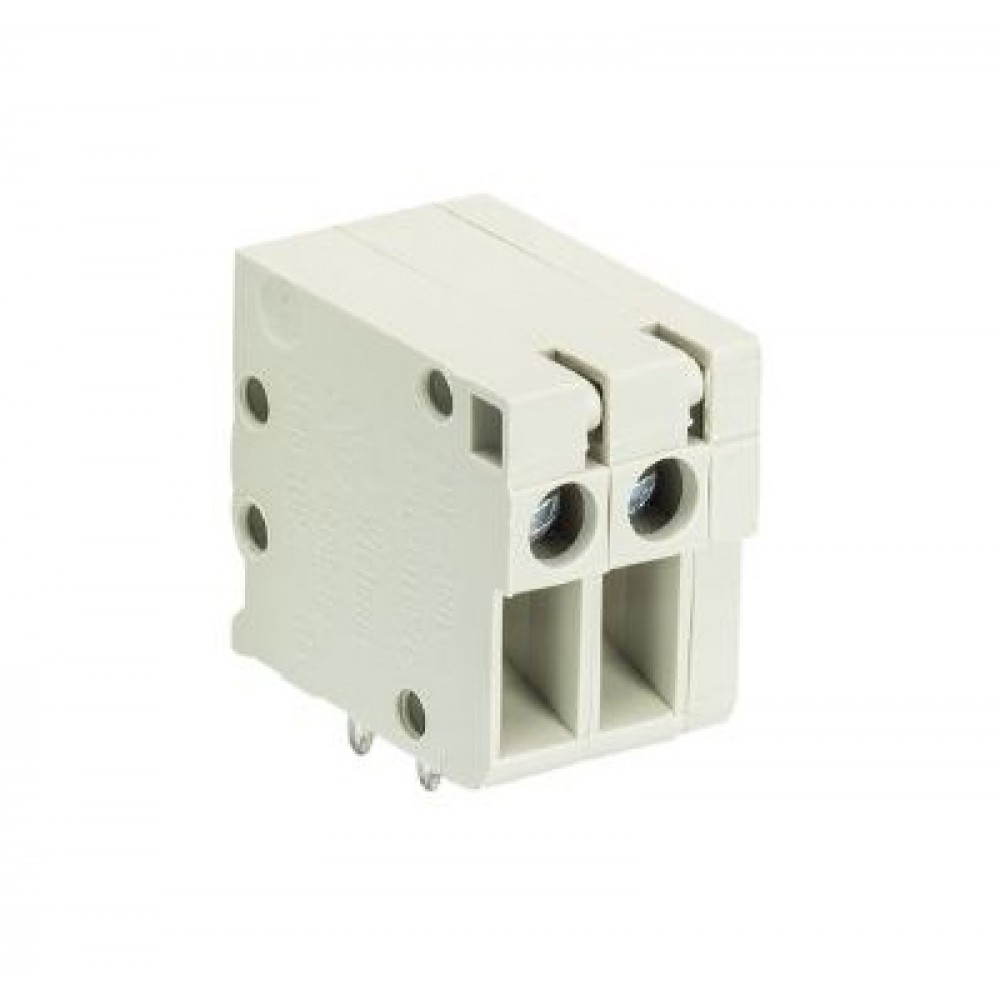 Клемма вертикальный подвод кабеля, на плату, шаг: 5.08 мм, 2 полюса, фиксация провода пружинная, исполнение: без маркировки, 300V, 16А, цвет: серый