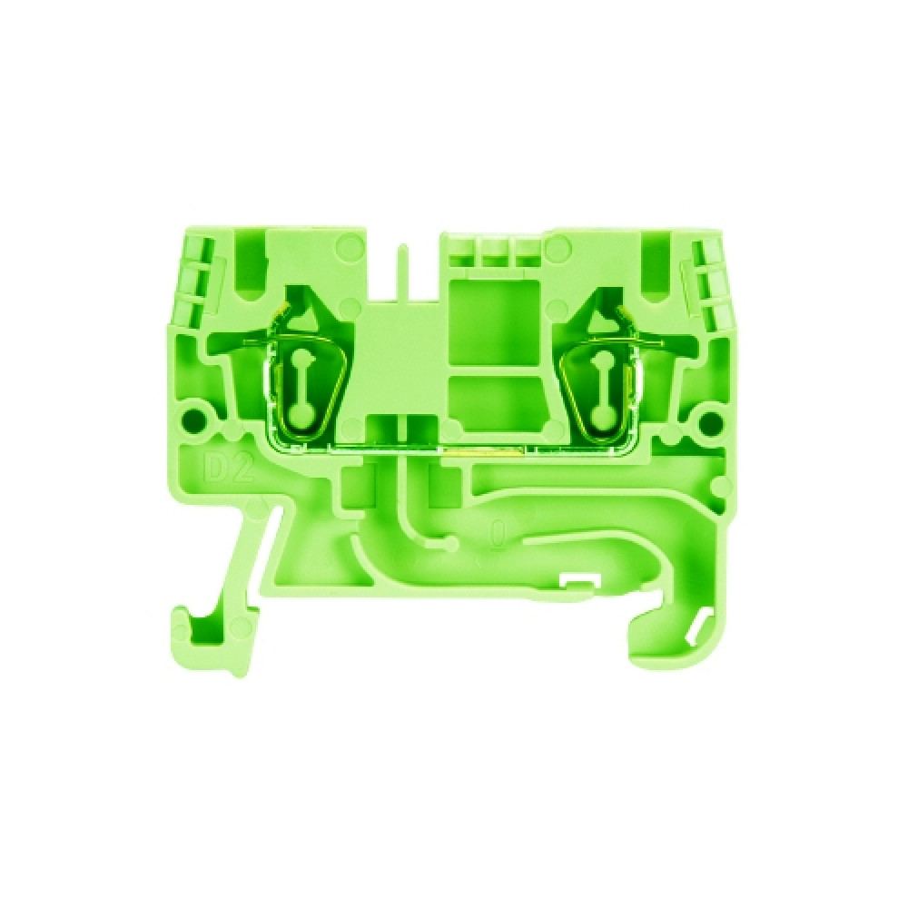 Проходная клемма, тип фиксации провода: пружинный, номинальное сечение: 2,5 мм кв., 24A, 800V, ширина: 5 мм, цвет: зеленый, тип монтажа: DIN35