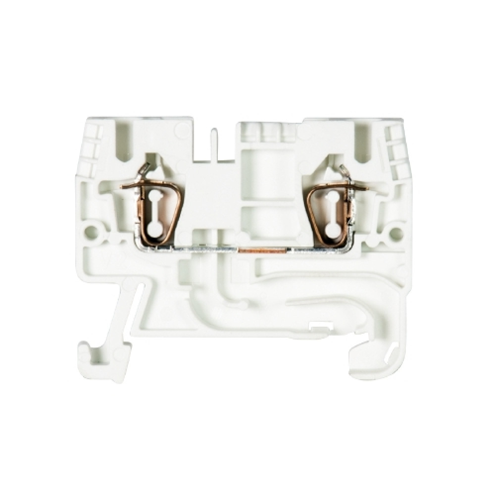 Проходная клемма, тип фиксации провода: пружинный, номинальное сечение: 2,5 мм кв., 24A, 800V, ширина: 5 мм, цвет: белый, тип монтажа: DIN35