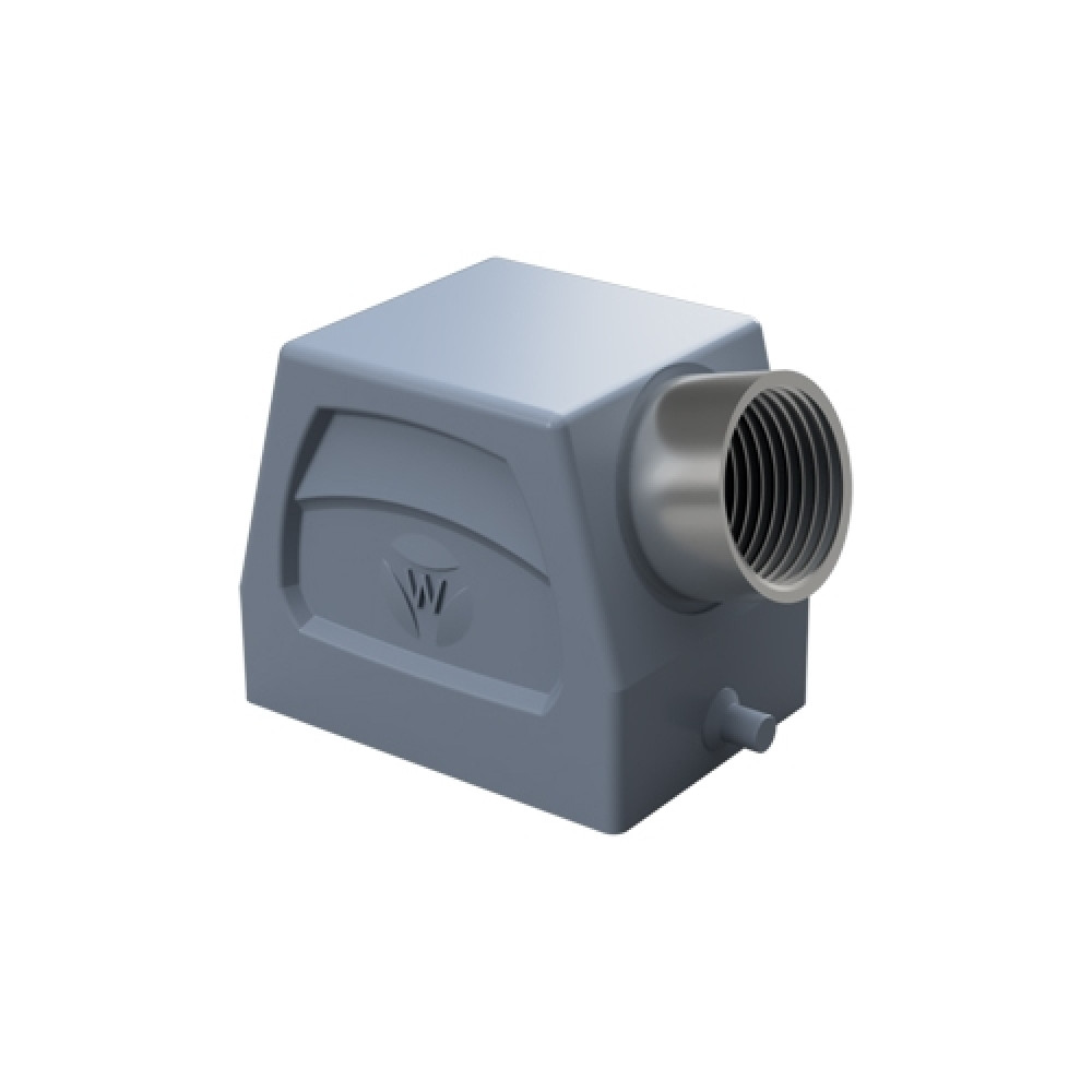 Крышка разъема на кабель, типоразмер 6B, без уплотнителя, 1 отверстие с резьбой для кабельных вводов M25x1,5, с резьбовым удлинителем, с боковым расположением, без защелки (упоры под одну защелку), материал корпуса: алюминиевый сплав