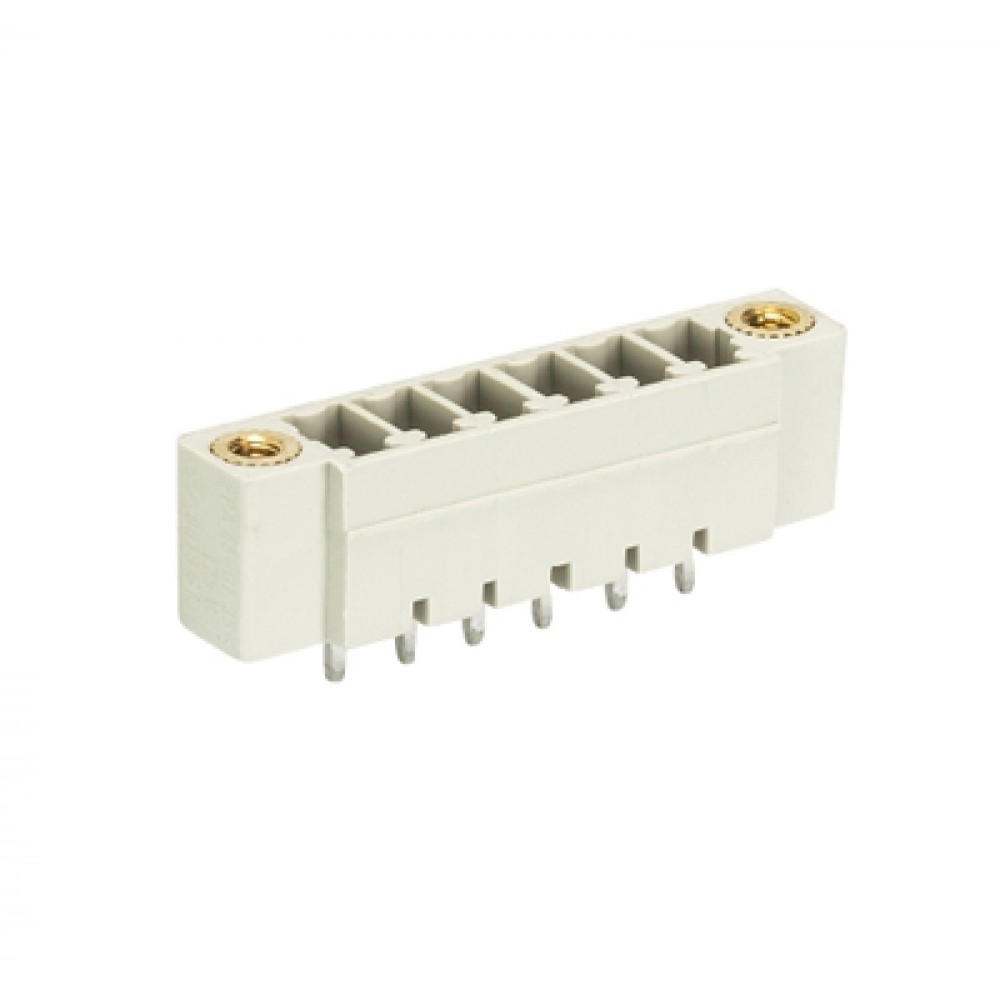 Вилочный разъем на плату 8813 S/6 GF M OB, Вилочный разъем, вертикальный, на плату, шаг: 3.81 мм, 6 полюсов, фиксация на плате пайкой, исполнение: без маркировки, с монтажными фланцами, 250V, 8А, цвет: серый