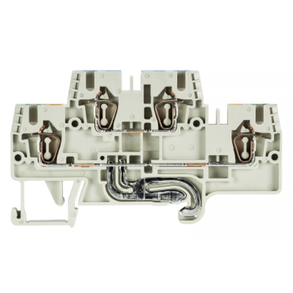 Этажная клемма, 2 этажа, N-PE, нижний ряд с заземлением, тип фиксации провода: пружинный, номинальное сечение: 2,5 мм кв., 24A, 500V, ширина: 5 мм, цвет: серый, тип монтажа: DIN35