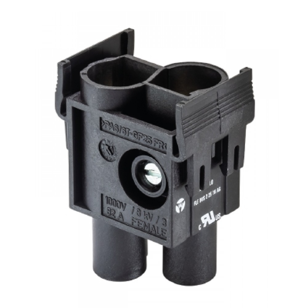 Розеточная контактная вставка, винтовая фиксация, 2 полюса, типоразмер FLEX, 1000V, 82A, сечение обслуживаемых проводников 10-25 мм кв, тип покрытия контактов: серебро