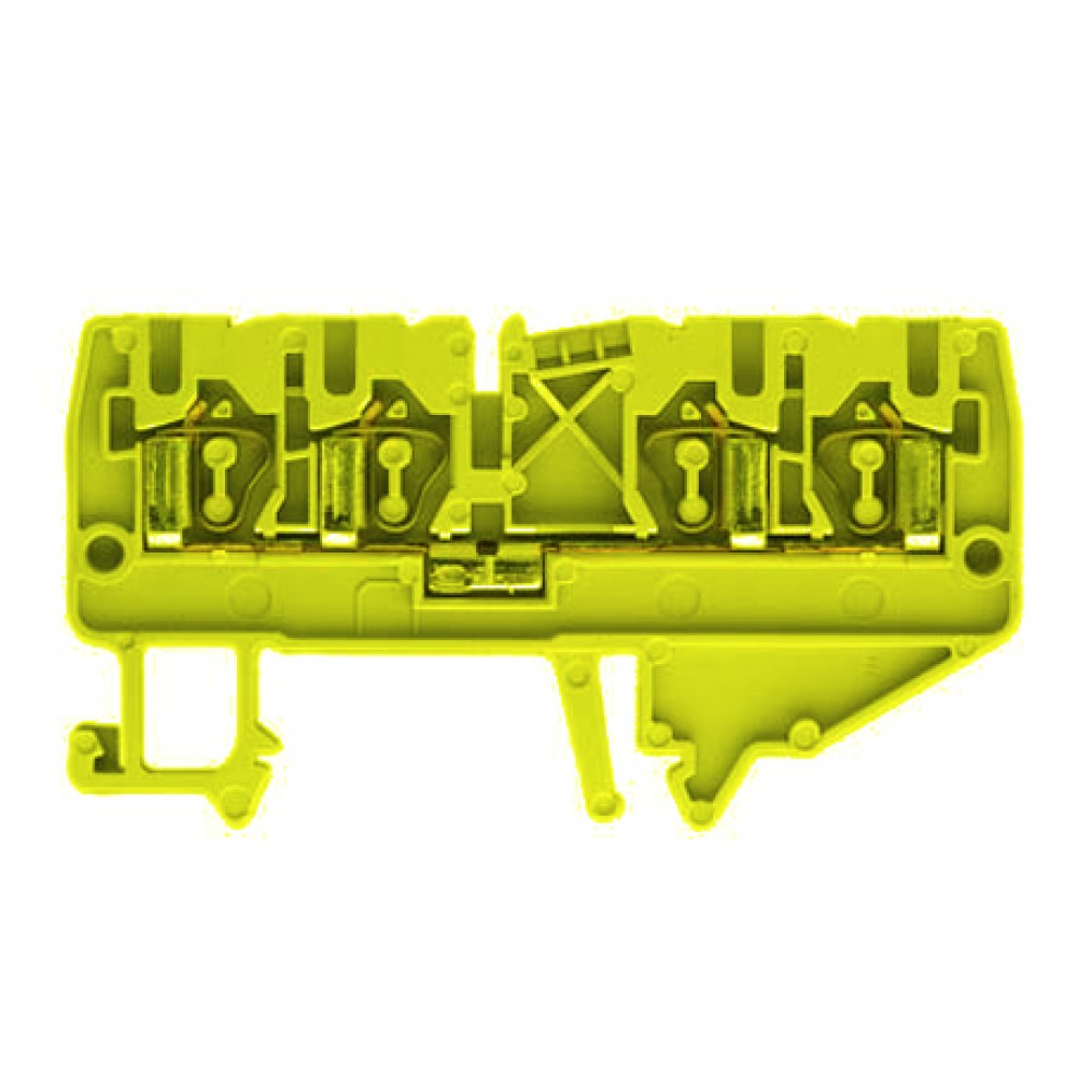 Проходная клемма, 4 точки подключения, тип фиксации провода: пружинный, номинальное сечение: 2,5 мм кв., 24A, 800V, ширина: 5 мм, цвет: желтый, тип монтажа: DIN35