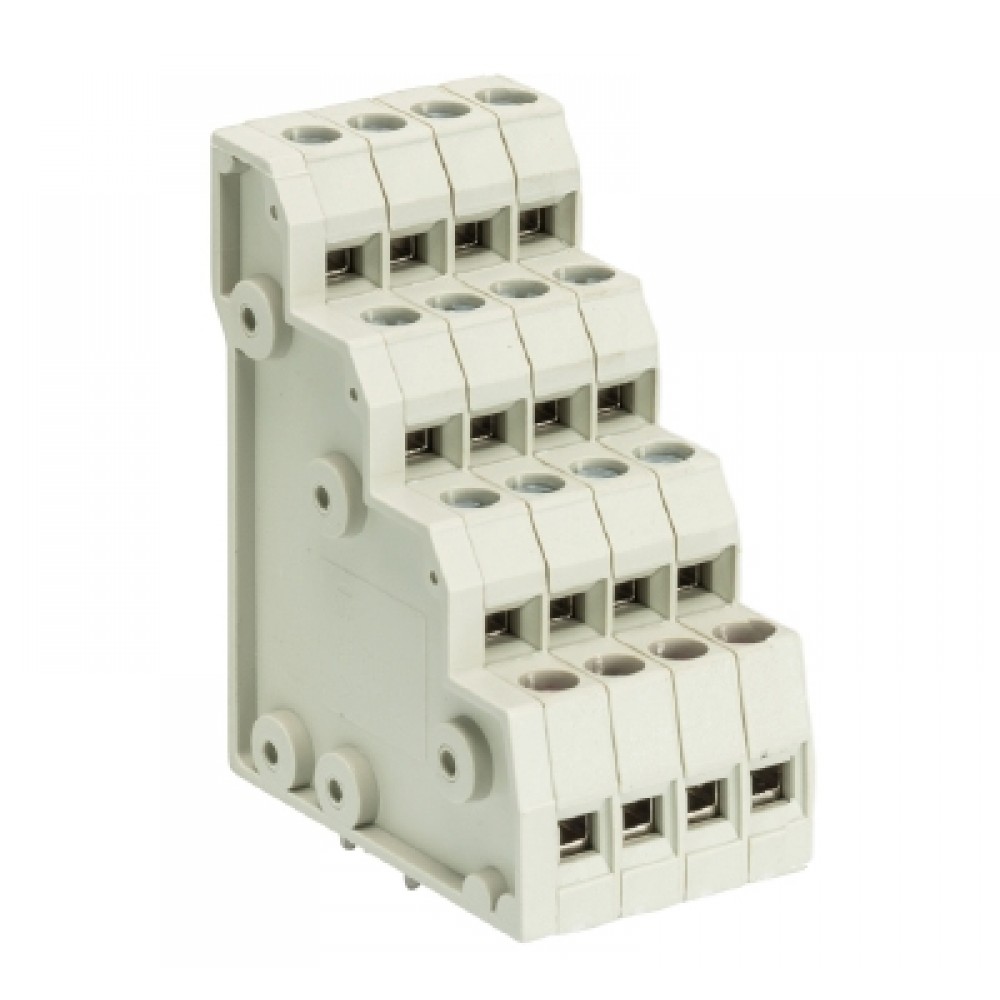 Клемма Wiecon 8195 V / 4 / 16 OB, Клемма, 4 этажа, горизонтальный подвод кабеля, на плату, шаг: 5.0 мм, 16 полюсов, фиксация провода винтовая, исполнение: без маркировки, 300V, 10A, цвет: серый