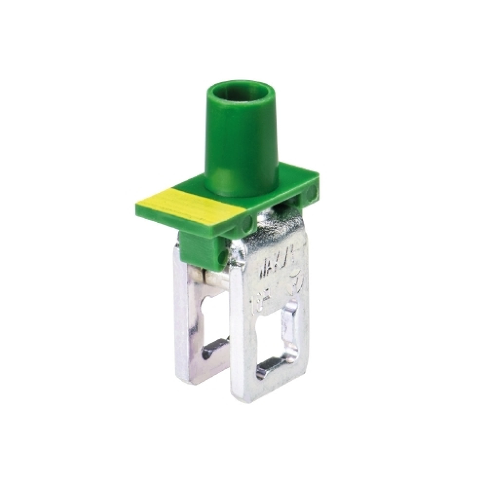 Клемма для подключения к токовой шине, тип фиксации провода: винтовой, номинальное сечение: 16 мм кв., цвет: зеленый, тип монтажа: шина 6х6