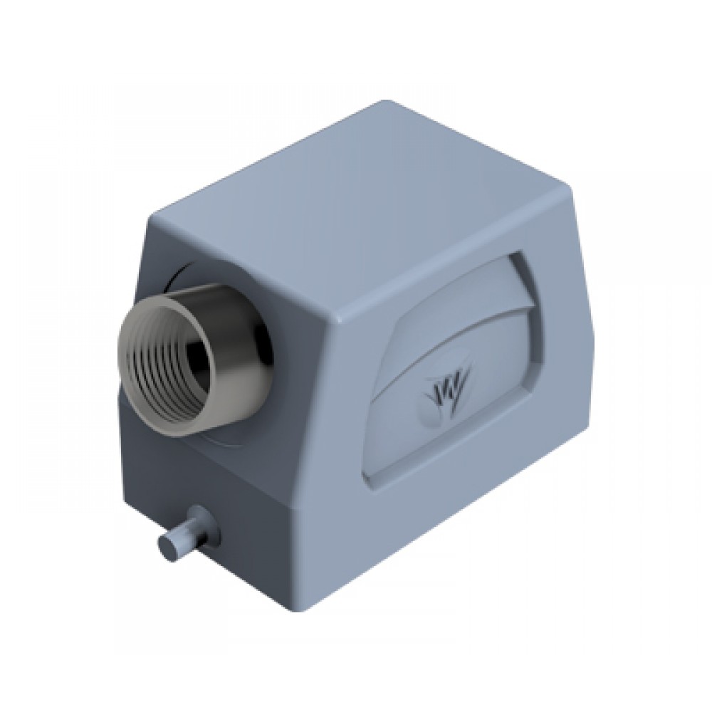 Крышка разъема 71.350.1035.2, Крышка разъема на кабель, типоразмер 10B, без уплотнителя, 1 отверстие с резьбой для кабельных вводов M20x1,5, с резьбовым удлинителем, с боковым расположением, без защелки (упоры под одну защелку), материал корпуса: алюминиевый сплав