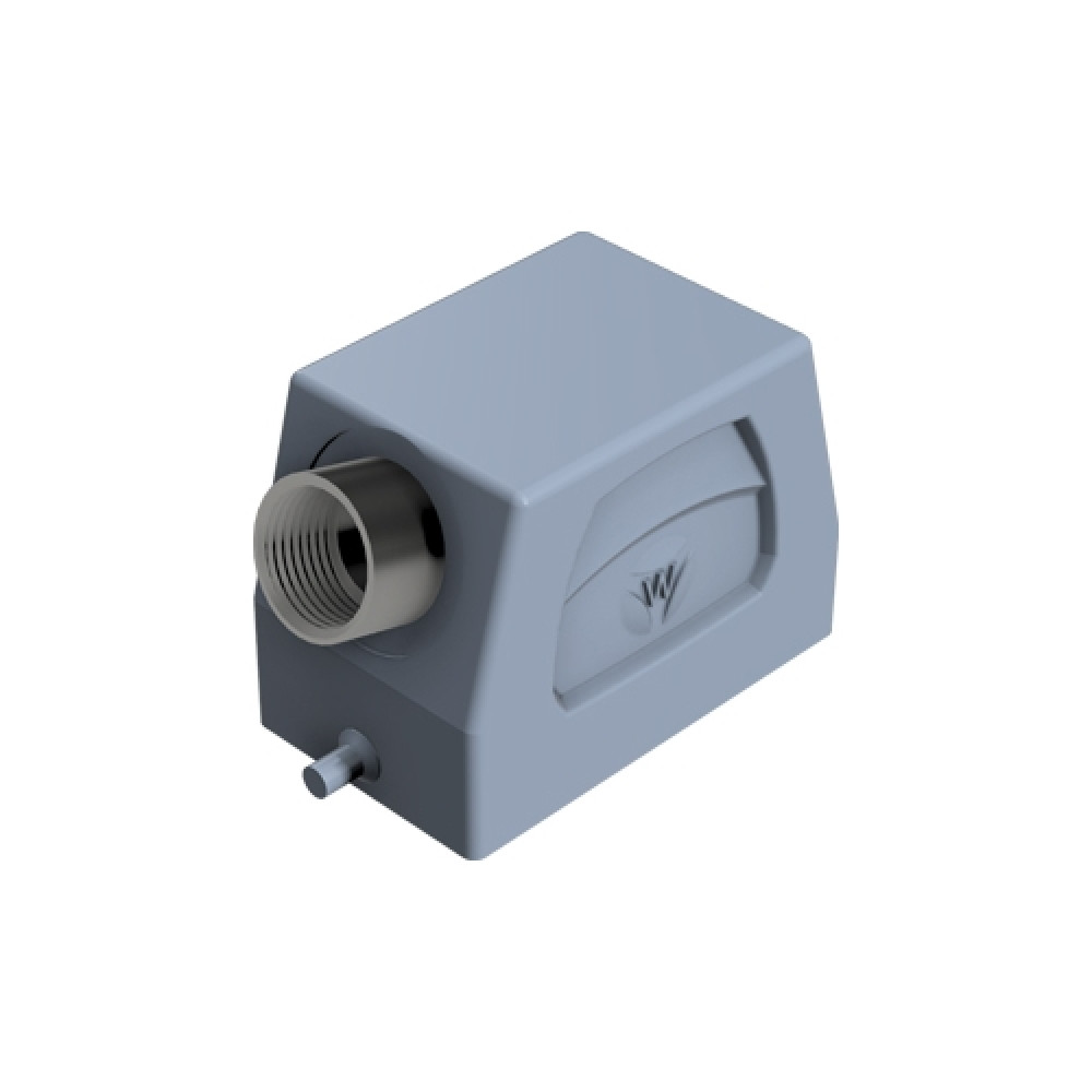 Крышка разъема на кабель, типоразмер 10B, без уплотнителя, 1 отверстие с резьбой для кабельных вводов M20x1,5, с резьбовым удлинителем, с боковым расположением, без защелки (упоры под одну защелку), материал корпуса: алюминиевый сплав
