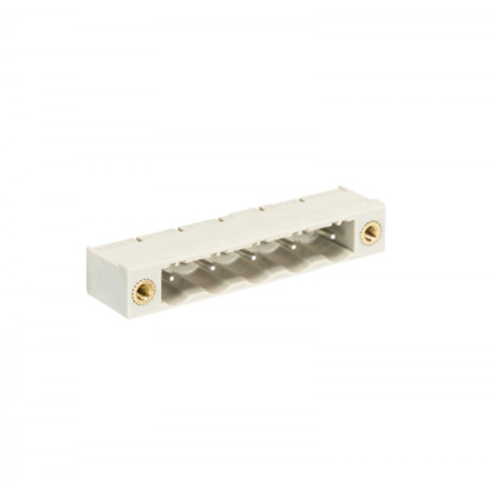 Вилка Wiecon 8413 S / 5 GF OB, Вилочный разъем, вертикальный, на плату, шаг: 7.62 мм, 5 полюсов, фиксация на плате пайкой, исполнение: без маркировки, с монтажными фланцами, 250V, 8А, цвет: серый