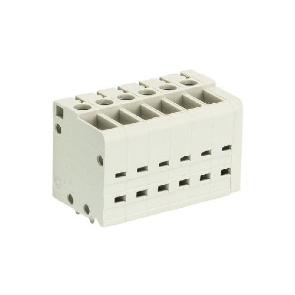 Клемма 8185/6 TOP V, Клемма вертикальный подвод кабеля, на плату, шаг: 5.0 мм, 6 полюсов, фиксация провода винтовая, исполнение: без маркировки, 300V, 16А, цвет: серый