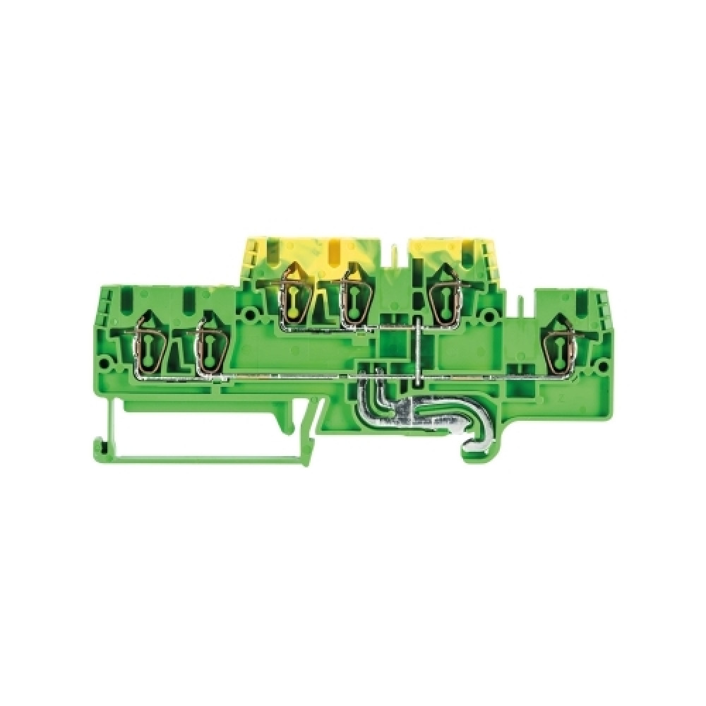 Заземляющая этажная клемма, 2 этажа, 2 x 3 точки подключения, тип фиксации провода: пружинный, номинальное сечение: 2,5 мм кв., ширина: 5 мм, цвет: желто-зеленый, тип монтажа: DIN35