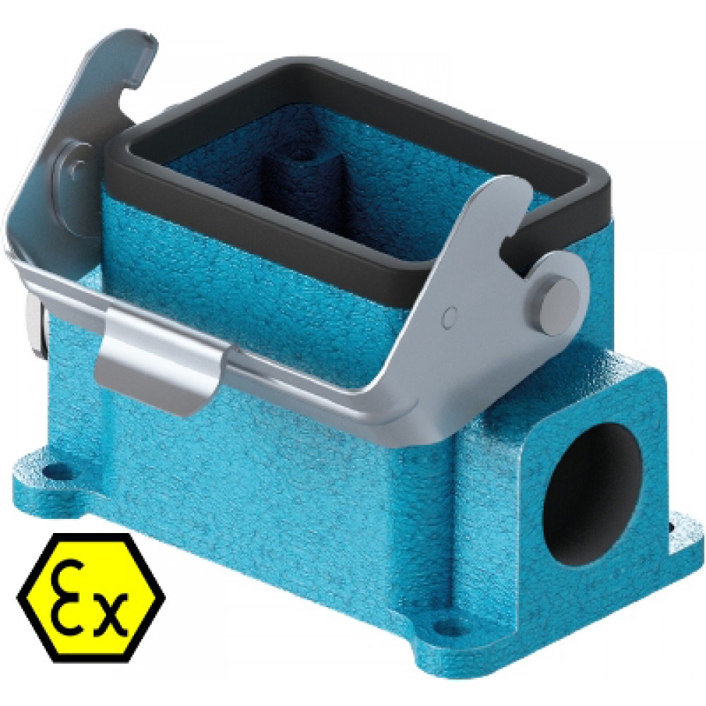 Основание разъема на панель, закрытое, типоразмер 6B, взрывозащищита, с уплотнителем, 1 кабельный ввод M20x1,5, IP54, с левым расположением, с одной защелкой, без защитной крышки, материал корпуса: цинковый сплав