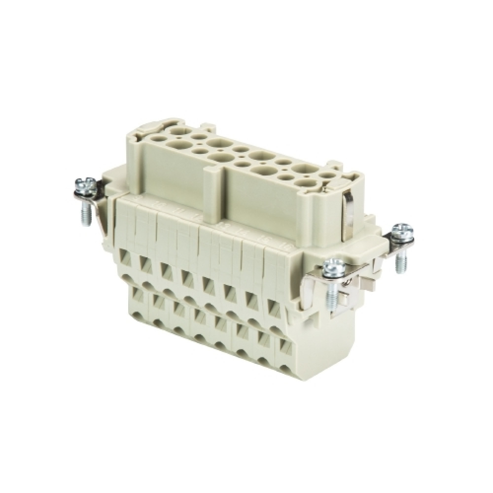 Розеточная контактная вставка, двойная пружинная фиксация, 16 полюсов + PE, типоразмер 16B, 500V, 16A, сечение обслуживаемых проводников 0,14-2,5 мм кв, тип покрытия контактов: серебро,