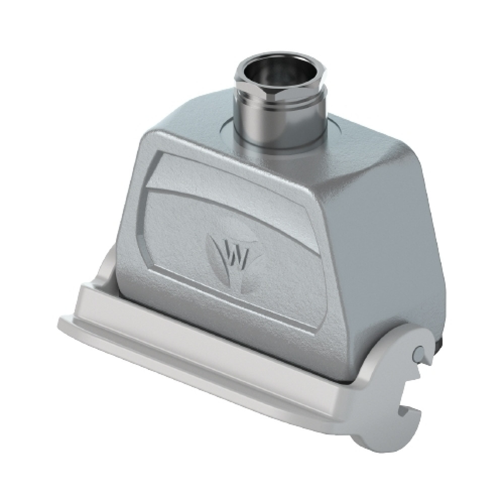 Крышка разъема на кабель, типоразмер 16B, с уплотнителем, 1 отверстие с резьбой для кабельных вводов M25x1,5, с верхним расположением, с одной металлической защелкой, материал корпуса: алюминиевый сплав