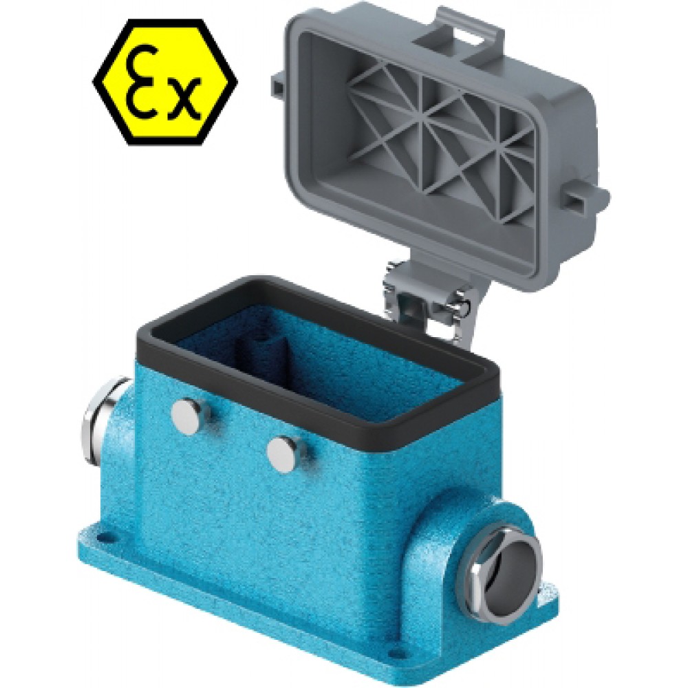 Доставка Закрытое основание разъема EX 70.340.1036.0 , Основание разъема на панель, закрытое, типоразмер 10B, взрывозащищита, с уплотнителем, 2 кабельных ввода M20x1,5, IP54, без защелок (упоры для двух защелок), с защитной крышкой, материал корпуса: цинковый сплав