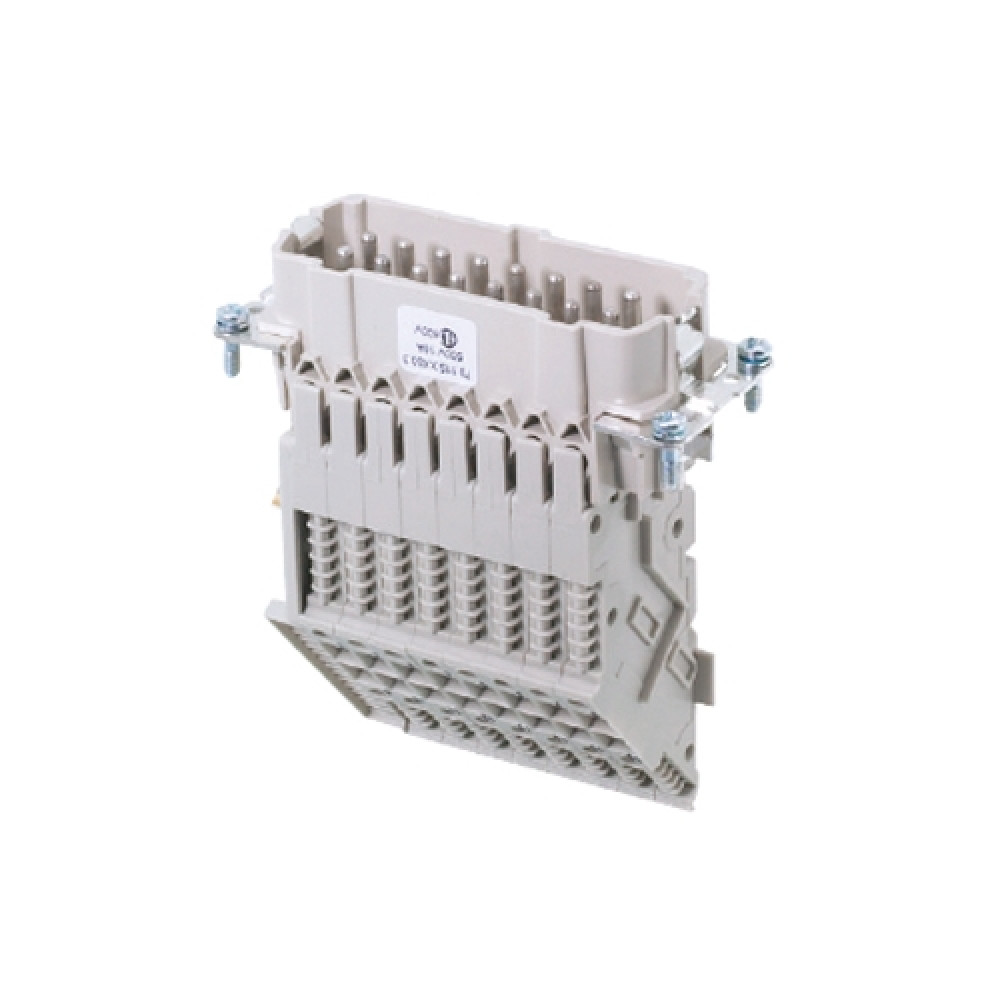 Вилочная контактная вставка, винтовая фиксация, 16 полюсов + PE, типоразмер 16B, 500V, 16A, сечение обслуживаемых проводников 0,5-4 мм кв., тип покрытия контактов: серебро, заземление слева, длинное исполенение, (6 полей для маркировки)