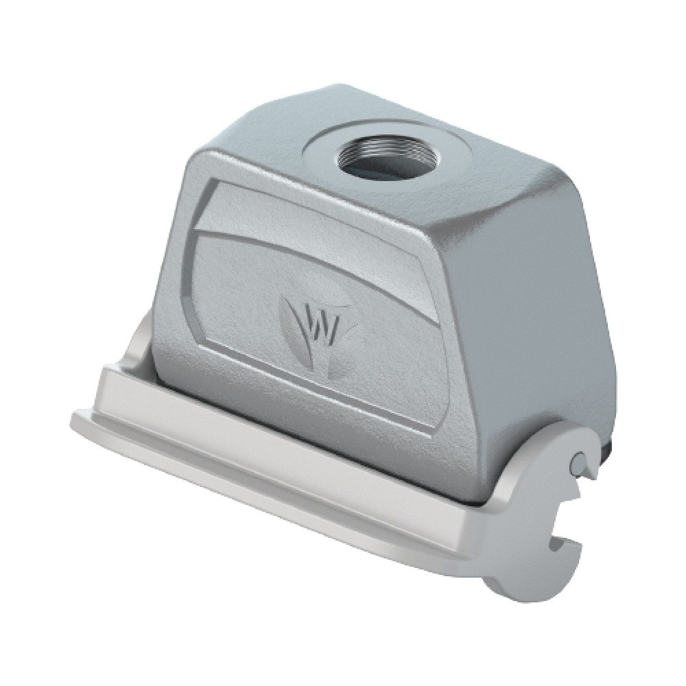 Крышка разъема на кабель, типоразмер 24B, с уплотнителем, 1 отверстие с резьбой для кабельных вводов M25x1,5, с верхним расположением, с одной металлической защелкой, материал корпуса: алюминиевый сплав