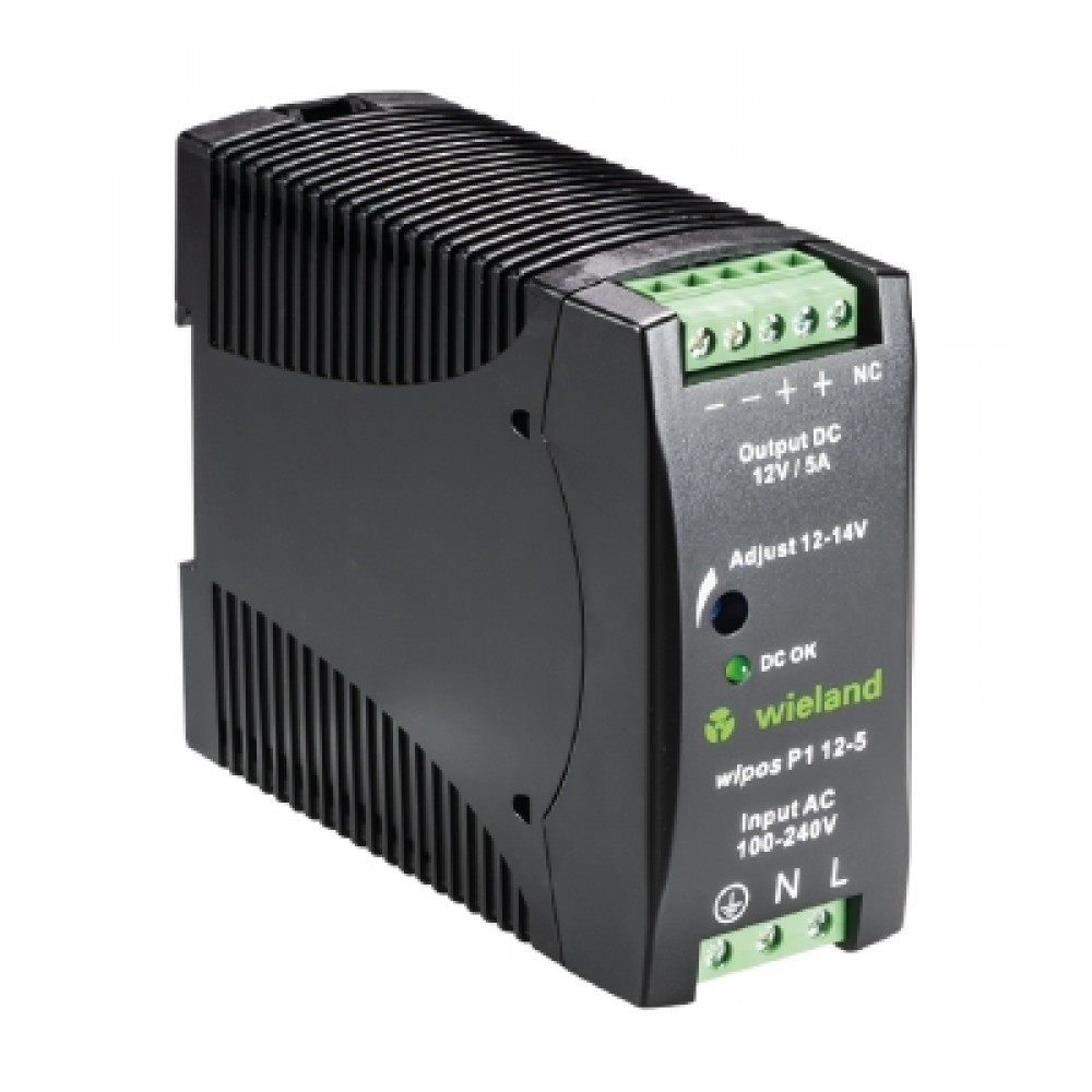 Блок питания WIPOS P1 12-5, Источник питания, однофазный, 12 V / 5 A, 60 W; диапазон входных напряжений: 85 – 264 V AC, 90 – 375 V DC; габариты (мм): ширина x высота x глубина: 40.5 x 90 x 114; вес 0,34 кг; монтаж: на DIN рейку, температура окружающей среды –40°C…+70°C
